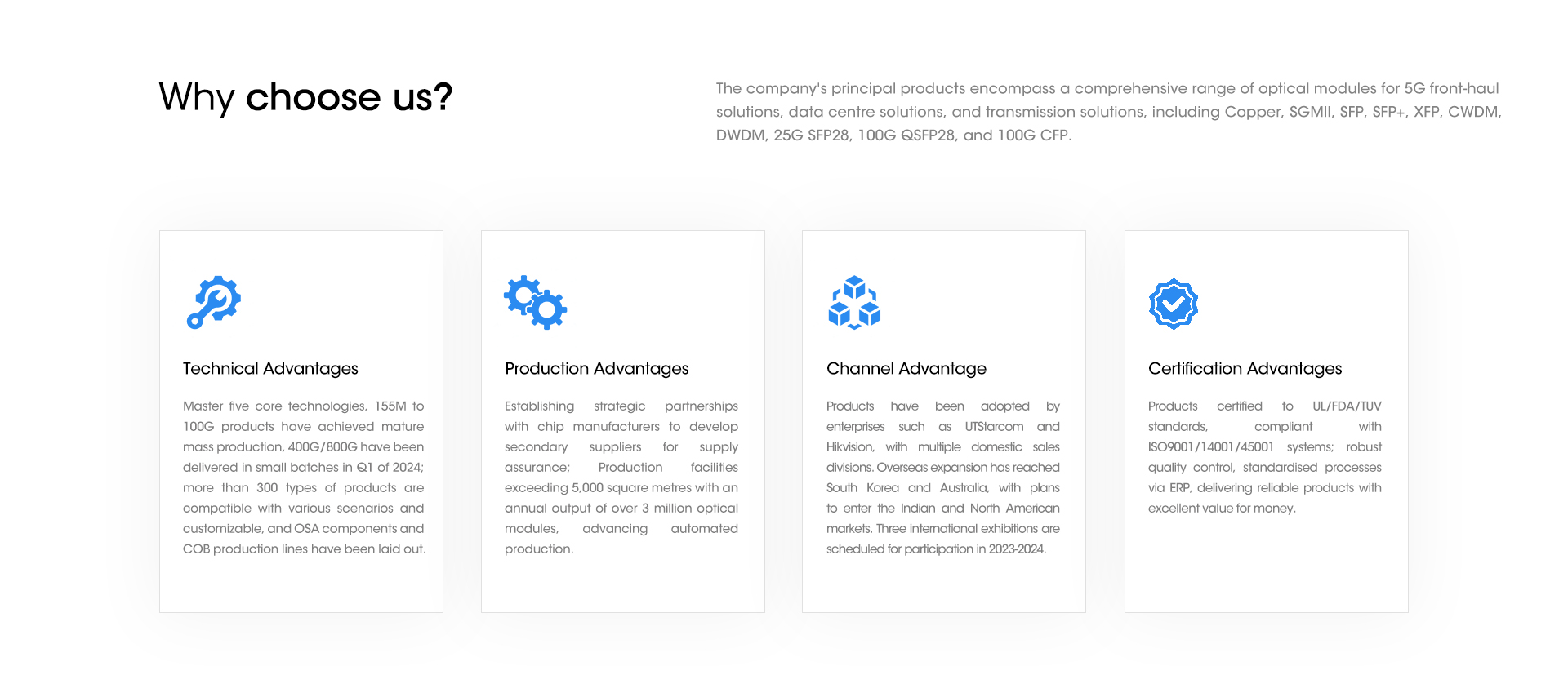 Focusing on the independent research, development, production and sales of high-performance optical communication and mobile communication modules.
