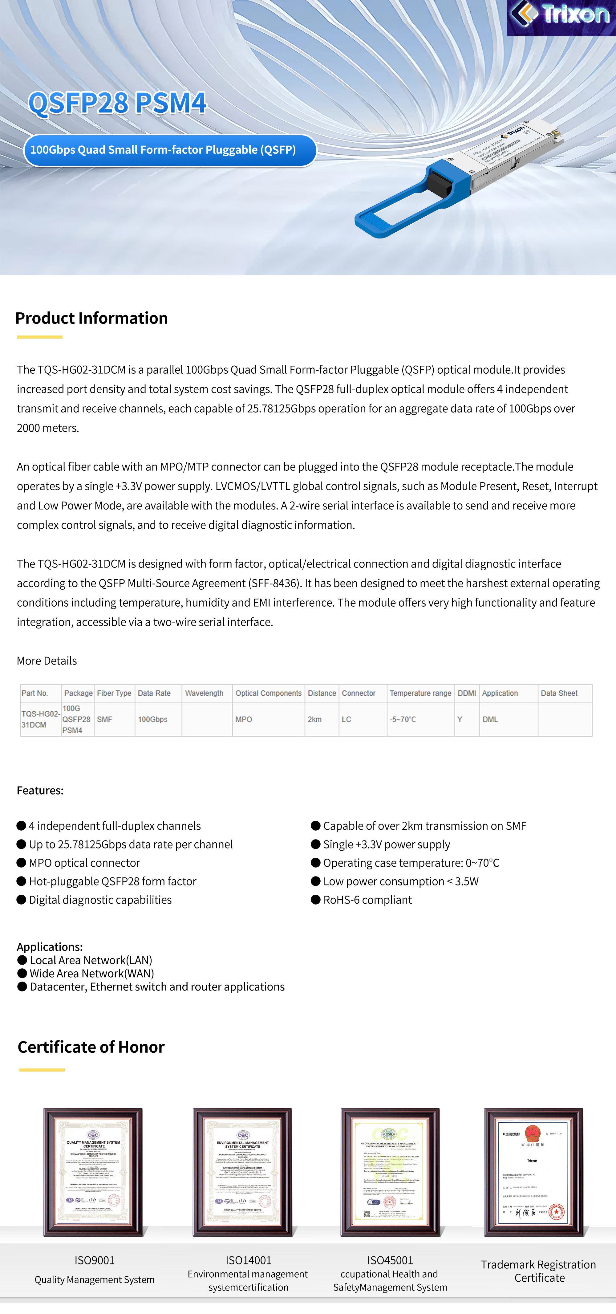 QSFP28 PSM4