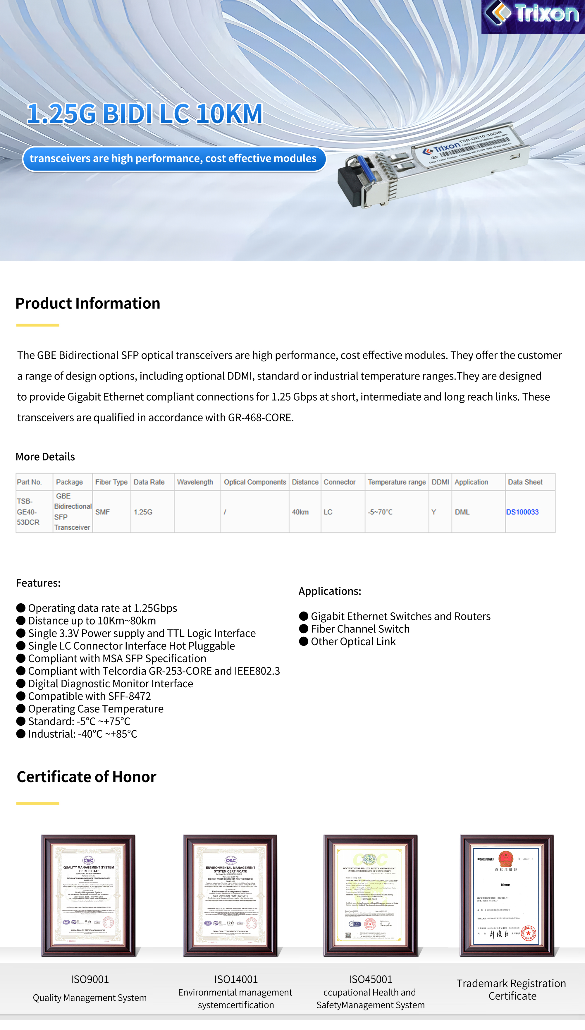 1.25G BIDI LC 10KM