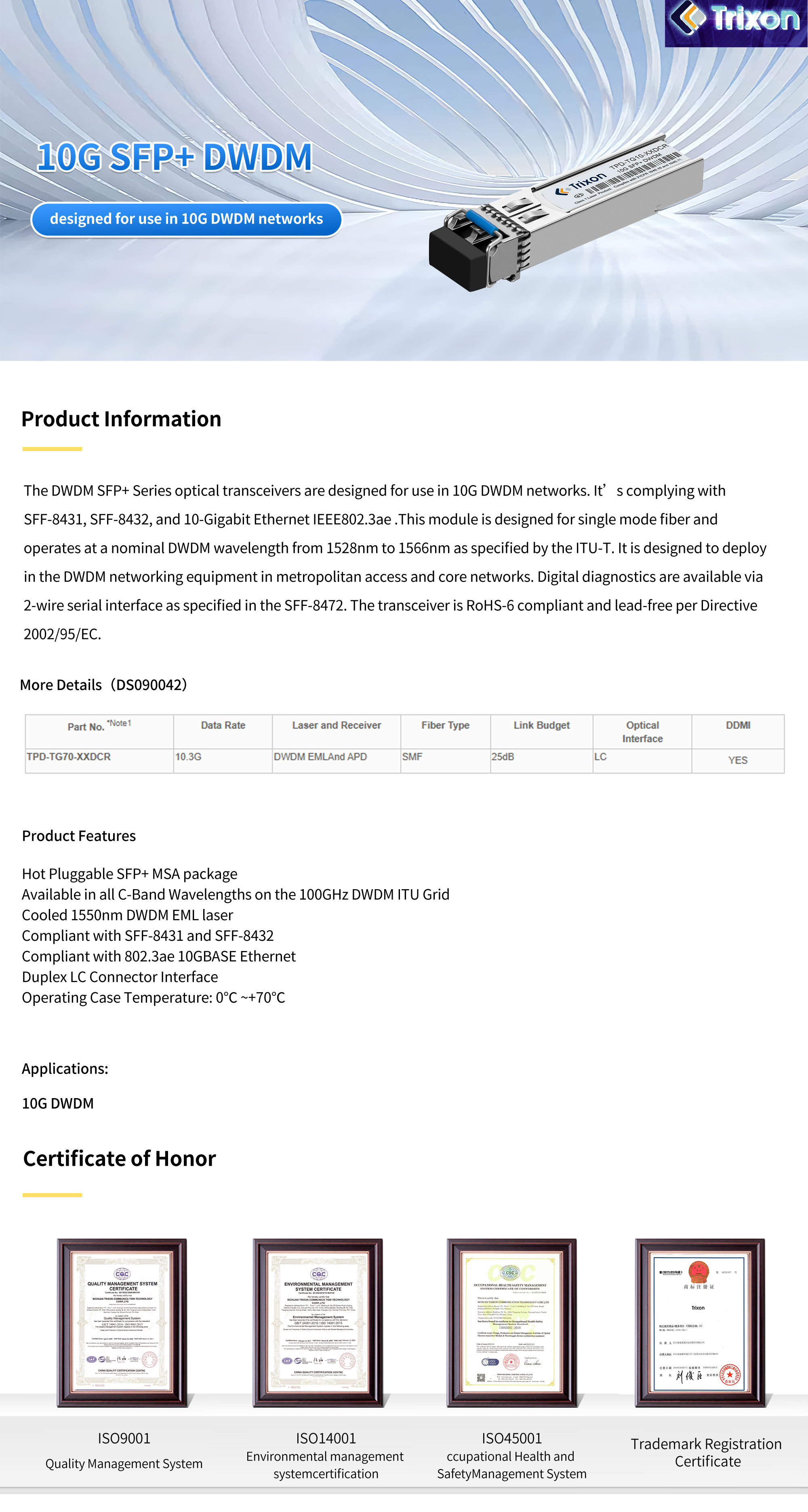 10G SFP+ DWDM