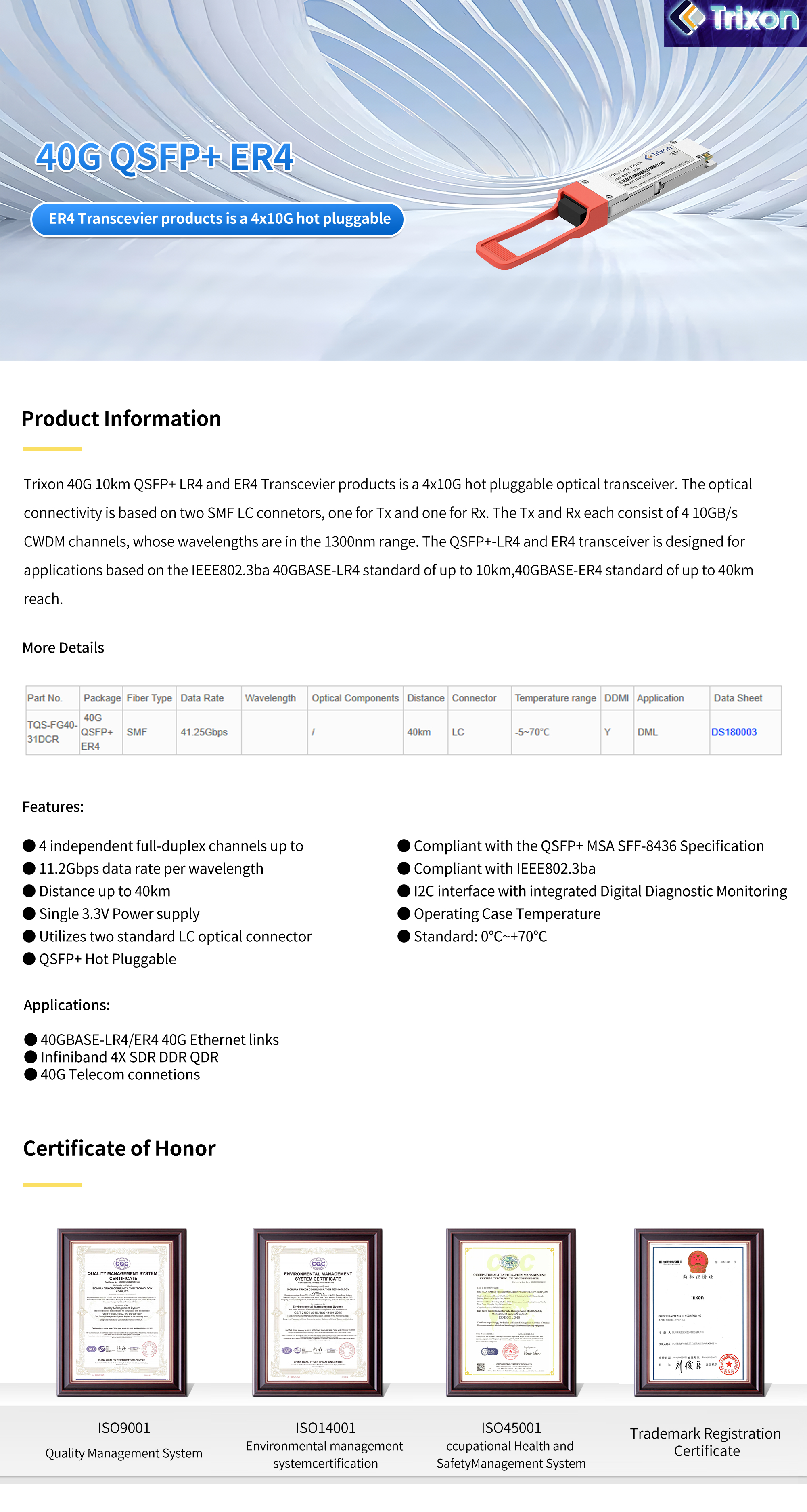 40G QSFP+ ER4